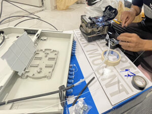 บริการรับติดตั้ง-แก้ไข เดินสายไฟเบอร์ออฟติก ทั้งในและนอกอาคาร เชื่อมโครงข่ายระยะไกล เชื่อมสายใยแก้วนำแสงด้วยเครื่อง Fusion Splice ค่า Loss ต่ำ เพื่อให้ได้สัญญาณที่ดีที่สุด พร้อมจัดหาอุปกรณ์และ Accessories ต่างๆ สำหรับงานไฟเบอร์ออฟติก
