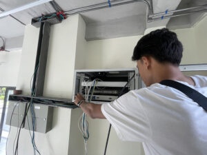 วางระบบเครือข่าย Network โดยสายแลน UTP Cat6, Cat5e รองรับระบบคอมพิวเตอร์, กล้องวงจรปิด , Access Control, พร้อมตรวจสอบปัญหาระบบเครือข่าย อาทิเช่น สายขาด สายสัญญาณ ติดๆ ดับ รวมไปถึงเพิ่มขยายระบบโครงข่ายแบบไร้สาย โดยการใช้ Wifi Hotspot